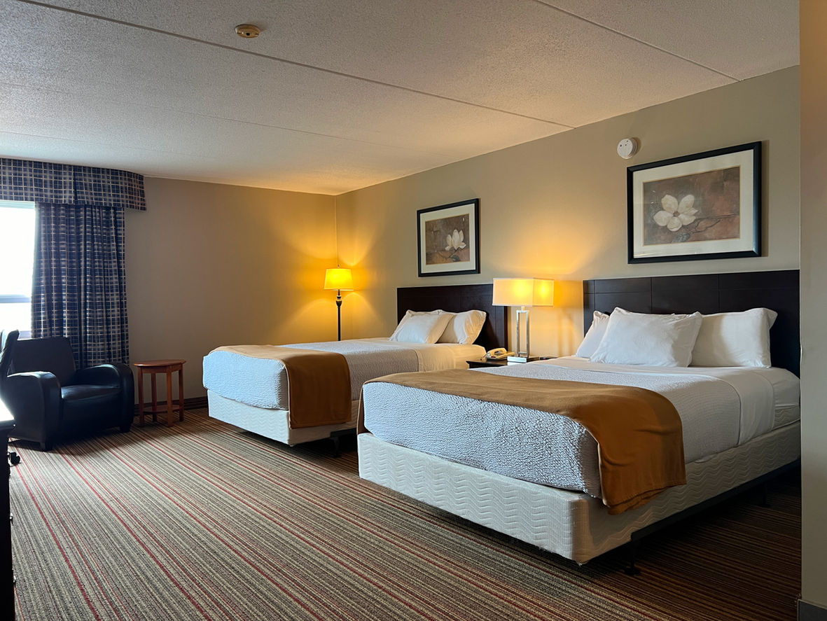 Experience simplicity and comfort in our Standard 2 Queen Beds room. Perfect for couples, groups, business travelers, and budget-conscious families, this room is equipped with two queen beds. Enjoy essential amenities such as a 39” flat-screen TV, coffeemaker, complimentary Wi-Fi, mini-fridge, microwave, iron, and ironing board. Thoughtfully designed for a restful and convenient stay, it's an ideal retreat after a day of activities. Your stay is tailored for ease and relaxation, meeting various needs.
